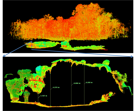 To make sure every single detail of the cave will be captured, the measurements were conducted at 52 stations throughout the cave. Field data was converted into digital 3-D point cloud using Cyclone software. A high-resolution 3-D volumetric model is used to more accurately model air flow in the cavern.